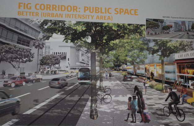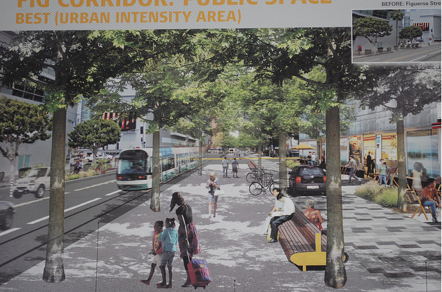 A standing room only audience descended on the Fashion Institute of Design on South Grand Street to listen to a presentation from the embattled Community Redevelopment Agency for a ground breaking and popular proposal to transform the South Figueroa Corridor. When people discuss Los Angeles’ streets, they usually use terms such as “car-oriented” or “ugly.” The new South Figueroa, aka My Figueroa, would be a truly beautiful street designed for people to walk, bike wait for transit or just enjoy life outside as well as a way to shuffle cars from one area to another.