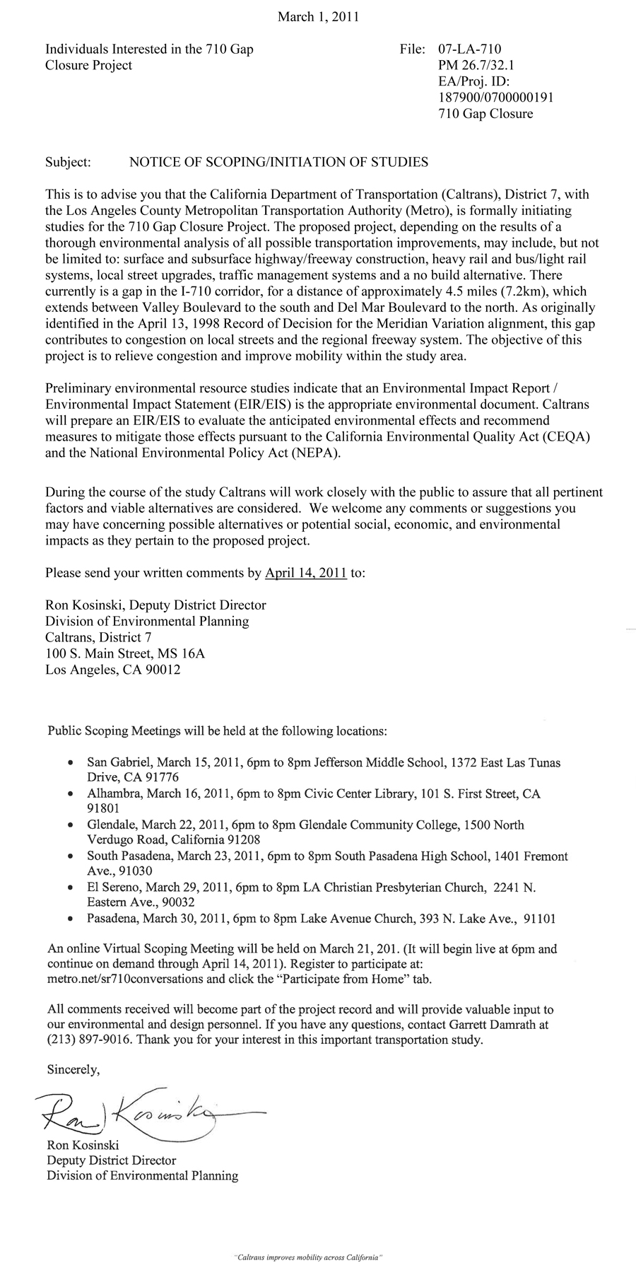 CalTrans and Metro presumably want to and (plan to) drill tunnels between the northern end of the 710 freeway and the 210 freeway. But they haven’t told participants in their 710 conversation process that they want to and (plan to) do this, and would we please provide input on what environmental impacts to study and what alternatives to consider?