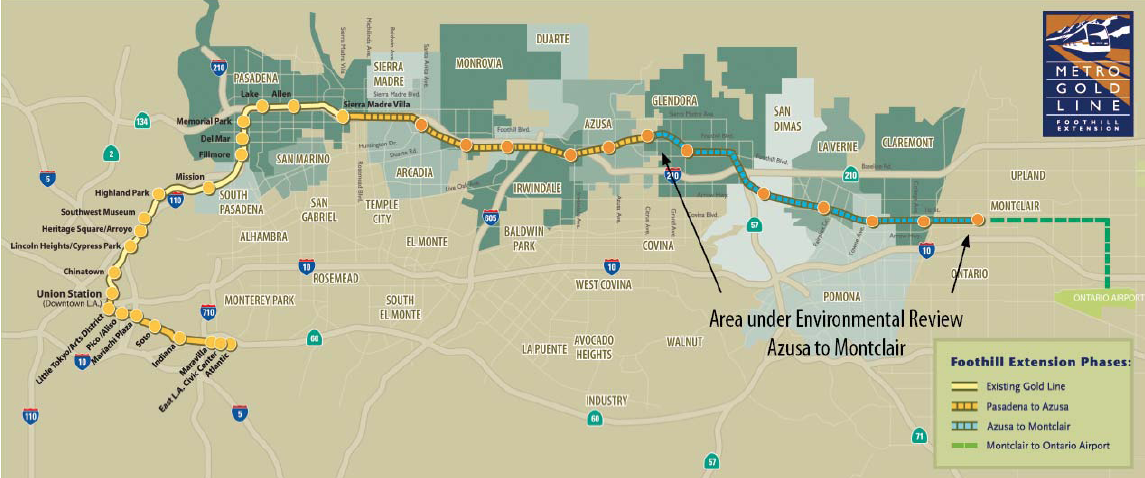 The Metro Gold Line Foothill Extension Construction Authority is co-sponsoring workshops with the cities in the 12.6-mile corridor between Azusa and Montclair along which the Authority hopes to extend the Gold Line. The subject of the meetings are proposed station sites in Glendora, San Dimas, La Verne, Pomona, Claremont and Montclair. The meetings begin this coming Monday.