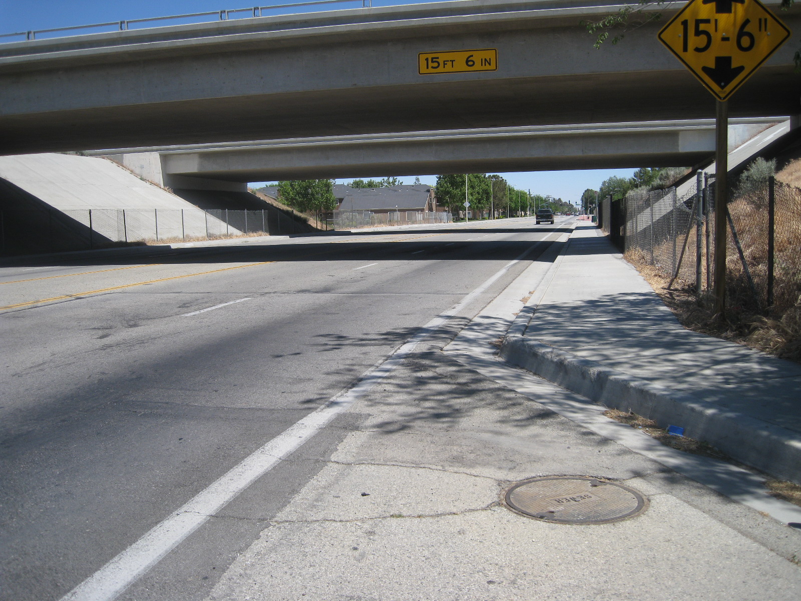 Not only are there few streets with lower speed limits, but there are also few direct routes for people biking to get across Lancaster or Palmdale going east-to-west. This is primarily because of the railroad tracks that bisect both cities and Sierra Highway that runs along the railroad tracks. Only a few major streets intersect with the highway; the rest don’t go through. The streets that do go through are all high speed with narrow outside lanes and/or no shoulders.