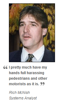 This week, The Onion’s “American Voices” asks three average Americans their views on L.A.’s recently passed cyclist anti-harassment ordinance. As you would expect from The Onion, the comments aren’t pretty. Of course, these three have been answering these questions for quite some time now.