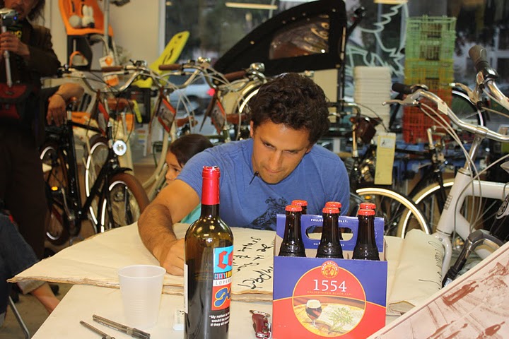 Now, with the city considering bike improvements for North Figueroa, Bray-Ali sees an opportunity to bring My Figueroa to North Figueroa. Last week, a group of thirty community activists gathered in the Flying Pigeon Bike Shop to create an organization to do just that. At the Flying Pigeon blog, Bray-Ali notes that the event expanded beyond the usual suspects with local businesses sponsoring the meeting by donating the chairs, tables, food, and other supplies.
