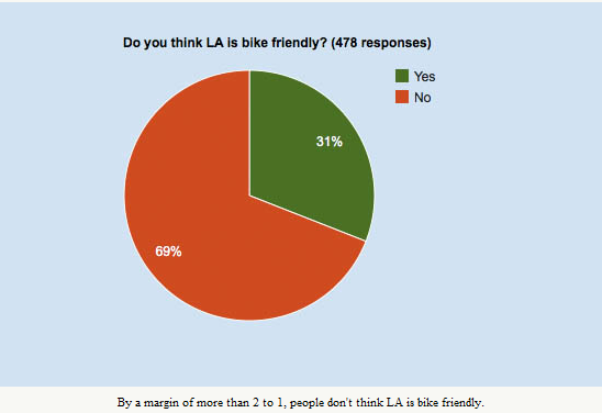 Featured Headlines (Bikes!): Bikeside has published the preliminary results of its simple survey, Is L.A. Bike Friendly? Almost 70% of all respondents wrote that L.A. is not. A secondary finding? The more regular you ride, the more likely you are to say that the city is bike friendly. Hmm. You can see more results, here. You can take the survey, here.
