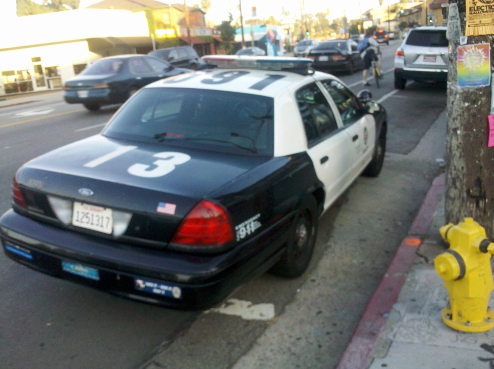 Sunset Blvd. is home to a 5’ Bike Lane that is next to a 7’ parking stall, just enough room for these two LAPD officers who needed to go shopping at the Surplus Store in Silver Lake.