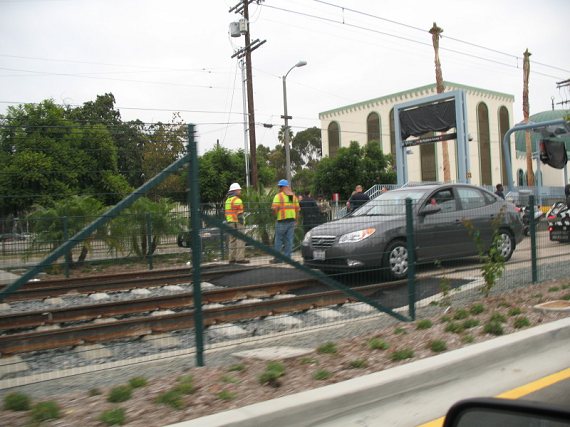 By now, many of you have seen the pictures that Gökhan Esirgen took of a car sitting on the Expo tracks at the station of Exposition Boulevard and Vermont Avenue that appeared on the Transit Coalition forum Tuesday evening. A quick call to the Expo Construction Authority confirmed that the picture shows exactly what people thought it showed, a distracted driver actually took a left onto the Expo tracks.