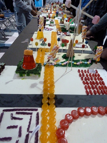 The candy Gold Line Train model is incredible. It’s a wedding cake of rich colors, shapes, textures that draws you in. The candy model captures the vibrancy and sensual quality of East Los Angeles. The Gold line is created by a butterscotch candies while an Aztec Temple made of sugar cubes creates a canopy over the station. There’s never been a model quite like this one.