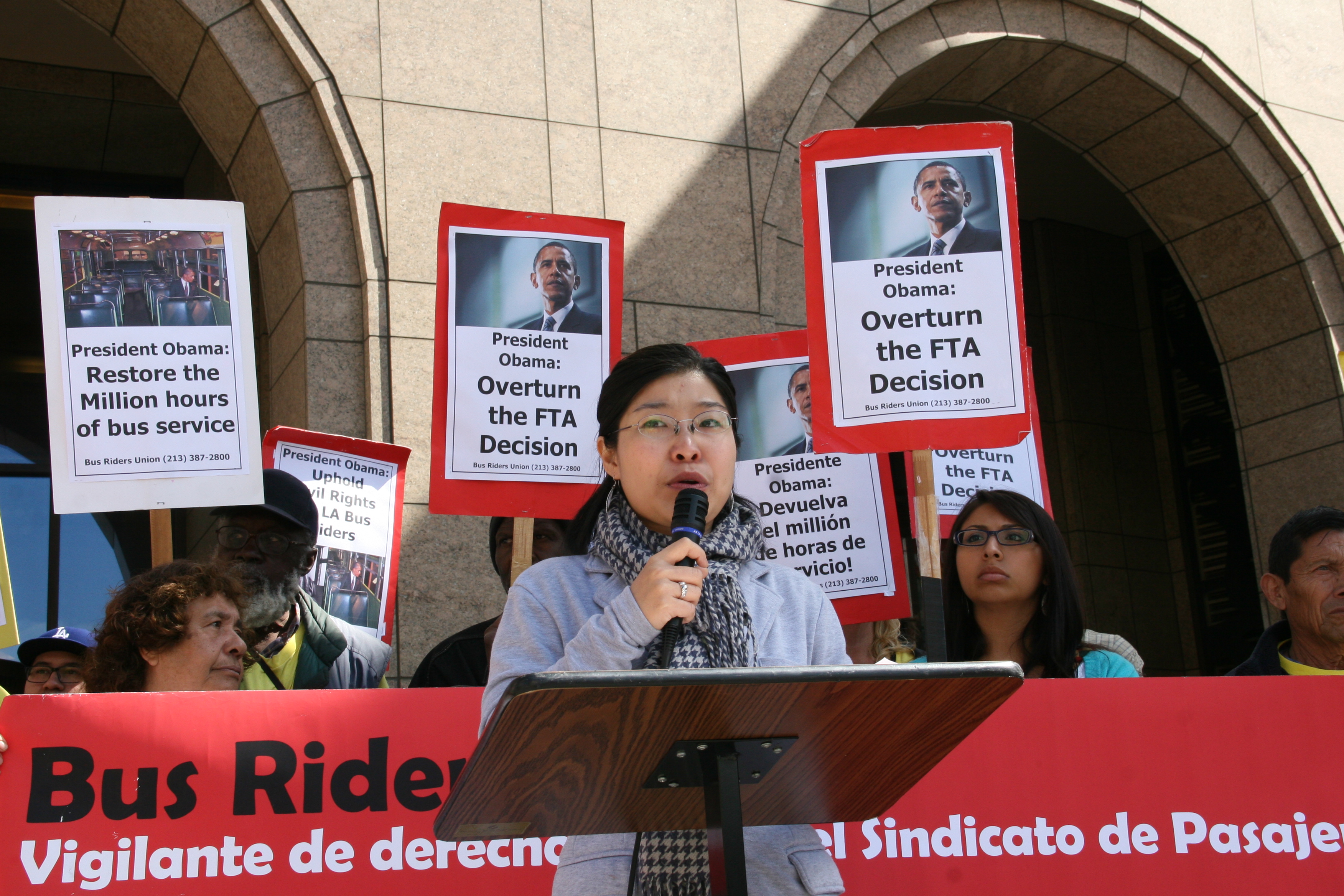 “FTA is ignoring the smoking gun uncovered by its own civil rights team,” said Sunyoung Yang, lead organizer at the Los Angeles Bus Riders Union, a grassroots civil rights membership organization of LA’s transit riders that has battled LA Metro for years. “Rather than hold Metro responsible, Administrator Rogoff is allowing the agency to paper over its civil rights abuses through more studies to make its civil rights violations disappear through administrative sleight of hand. Since Rogoff and FTA have abdicated their responsibility to enforce Title VI, we’re calling on President Obama to bring real civil rights to LA bus riders and order the restoration of lost transit service.”