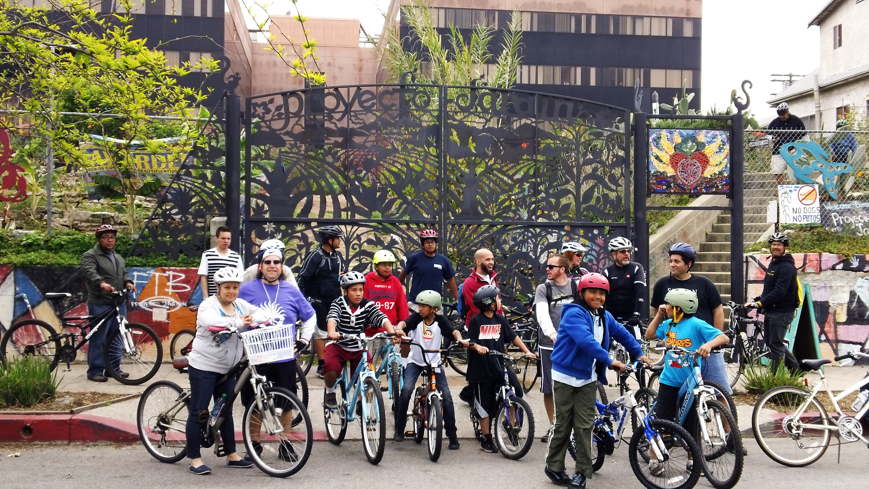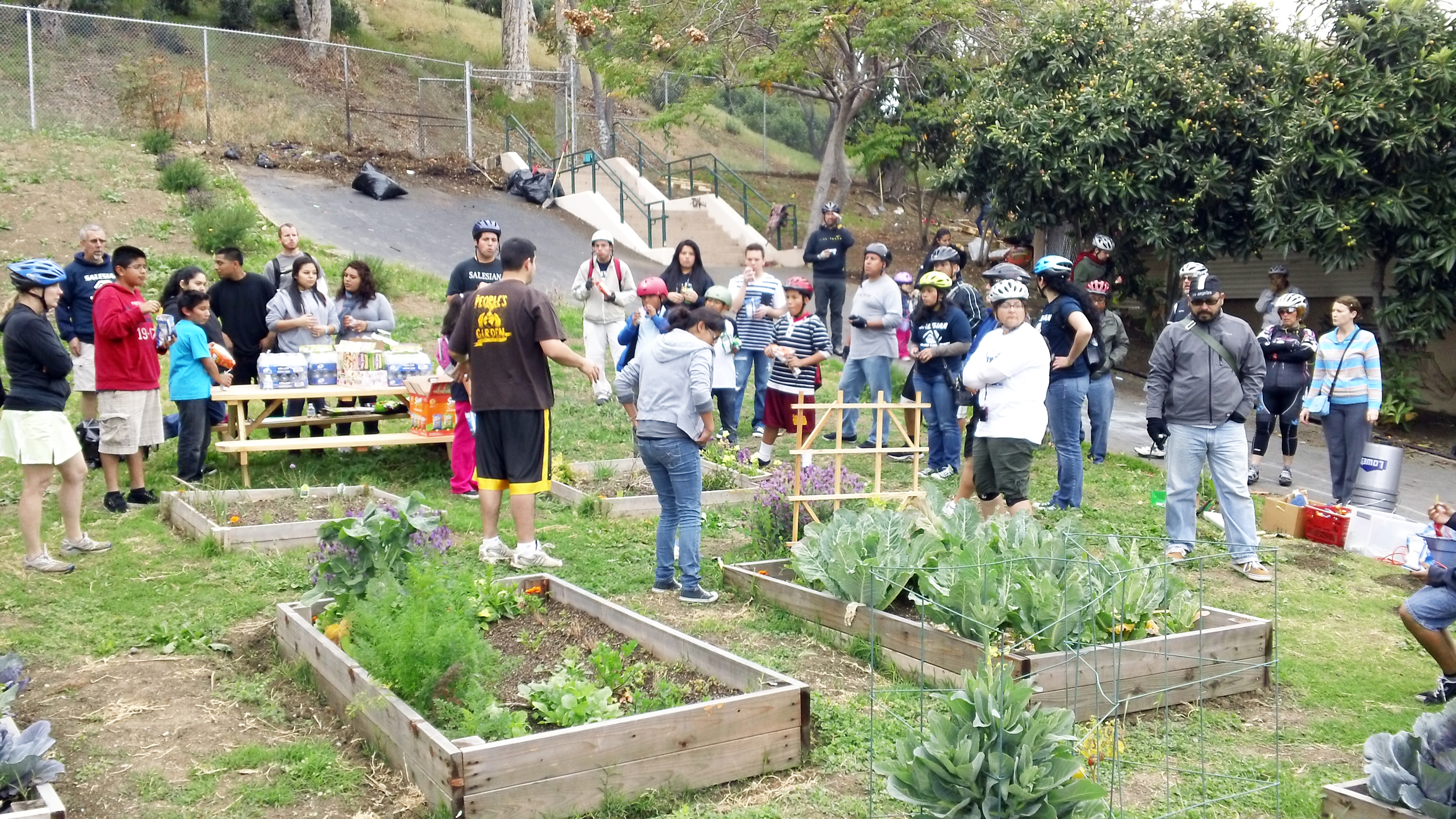 The bike ride began at the Salesian Family Youth Center on 4th Street in Boyle Heights. The ride made brief stops at six Community Gardens (CG) located on the Eastside. Each garden varied in size, the array of vegetation, the layout, topography, and the way each one is managed.