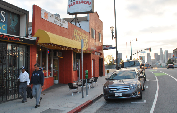The discount and restaurant’s location gives people an incentive to use a full range of transportation options. The Mariachi Plaza Gold Line Station is across the street, and the green-stripped bicycle lanes pass by the restaurant on 1st Street, said Carlos Ortez, owner of Un Solo Sol Kitchen.