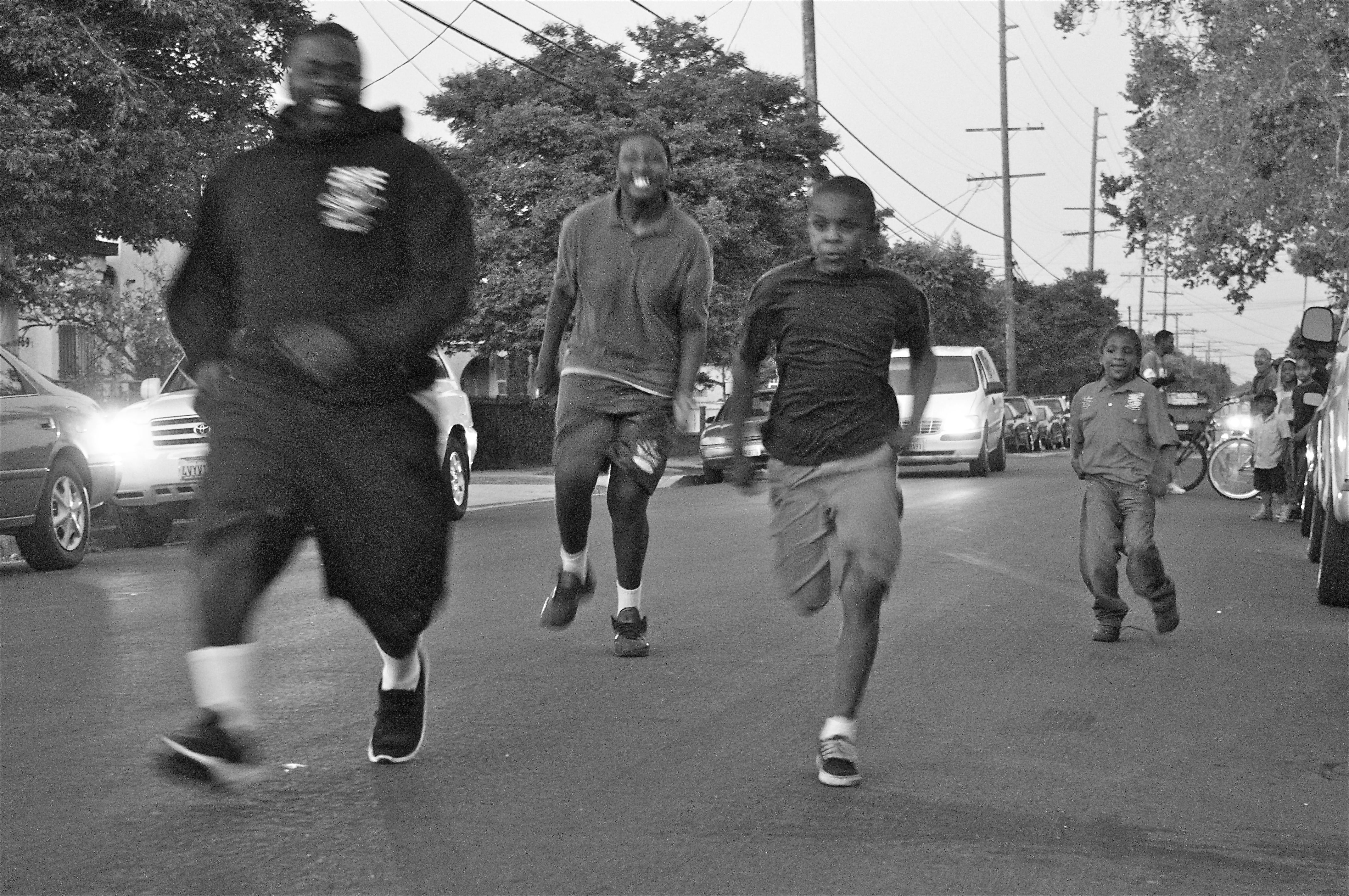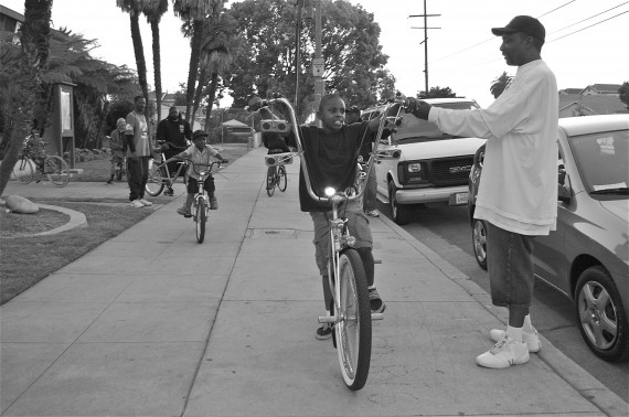 The Friday Night Ride began outside Hope Central Watts around 7:00 that evening when I met up with Ron, Calvin, John, Fred, and Val (who had come all the way up from San Diego to ride with us). The kids that had come by to take advantage of the church’s Friday night dinner for the community were thrilled to see the East Side Riders‘ cruisers parked outside.