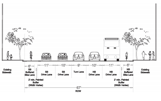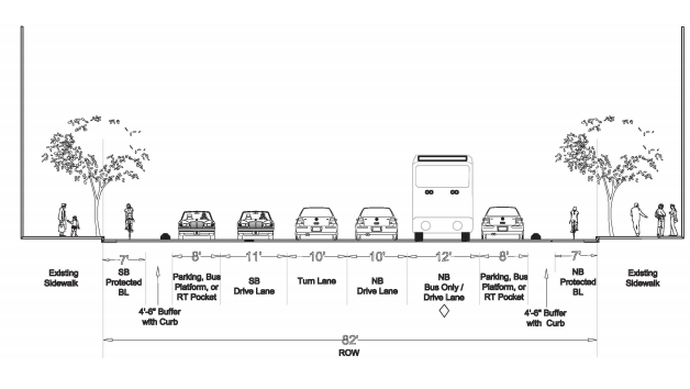 The lane width varies in different sections of the street, after the jump we show what parts of Figueroa are going to see what types of lane configurations.