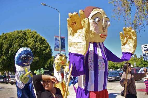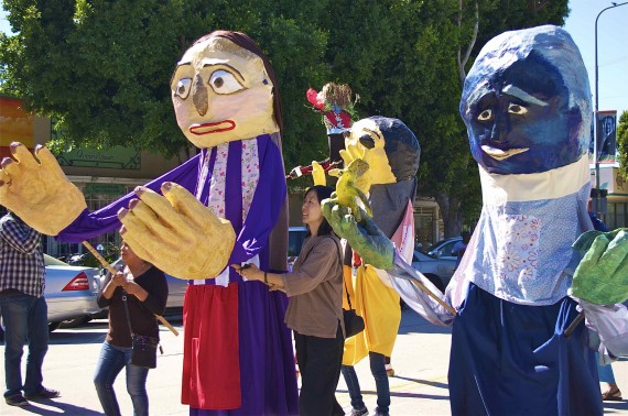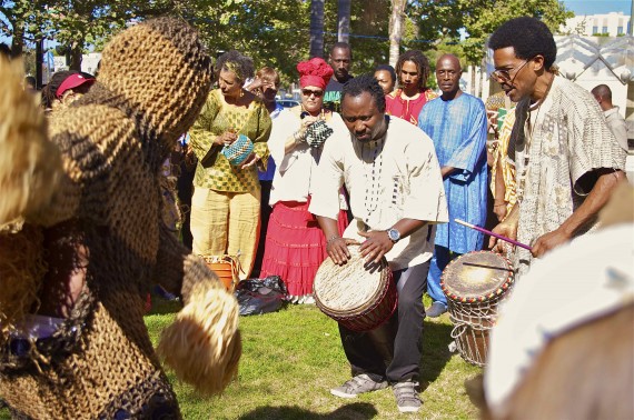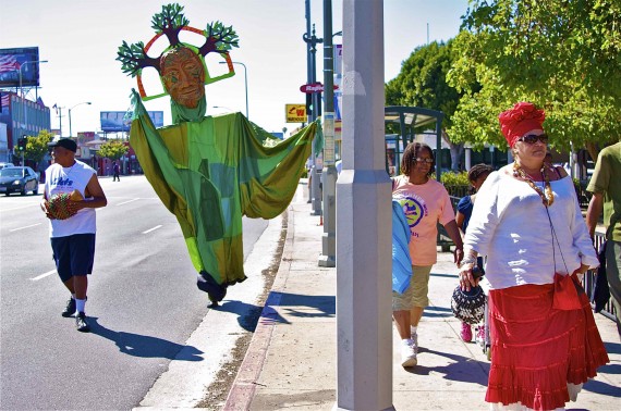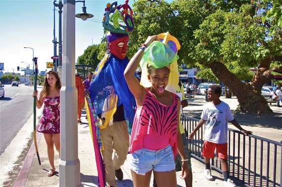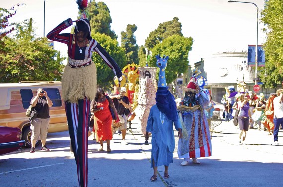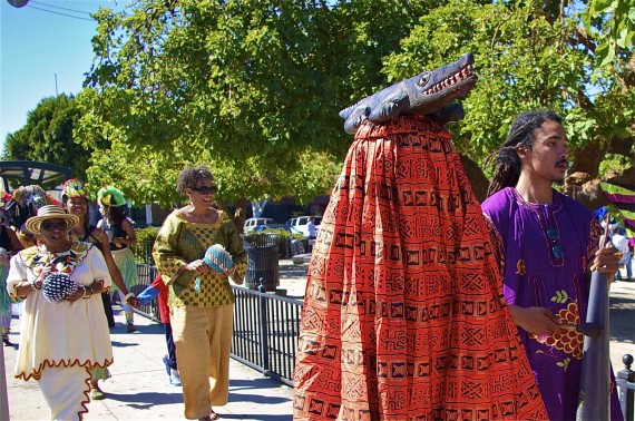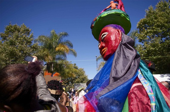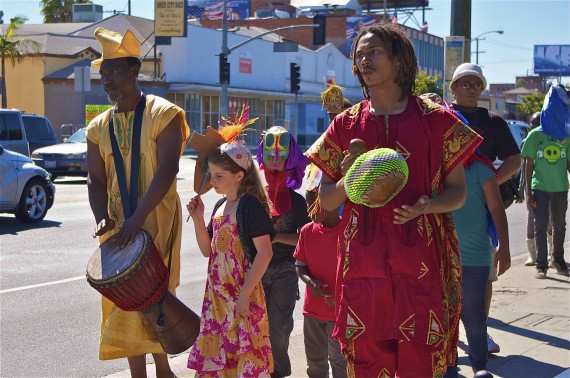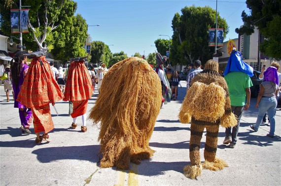 In case you missed it this weekend, the Leimert Park Art Walk celebrated its second anniversary in style. Members of the community donned masks and traditional (or African-inspired) dress to commemorate the occasion and honor their ancestors. They were joined by members of the Korean community and their mesmerizing papier-mâché figures.