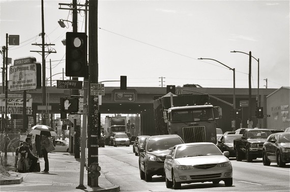 “You think they don’t already know this is a problem?” a man standing in the shade of a pole with his young daughter asked when I approached with my camera. “They don’t have to ride the bus so they just don’t care.”