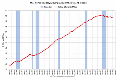 I also expect my readers to take in my own conjectures with a healthy dose of skepticism, and to judge them against your own instincts and sources of information. I routinely doubt myself and look for information that might suggest my thinking is off track. However given the best information I have to go on, I do not expect vehicle miles traveled in cars to go back into perpetual growth rates seen prior to 2008. Should there be any recoveries in that direction , I expect they will be fairly short lived gasps before further decline, and not lasting second winds.