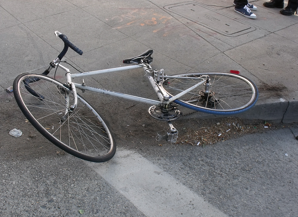 During the year and a half period between Birdman’s hit and run incident and the suspect’s sentencing came yet another case of hit and run injustice. Brandon Chau, a UCLA student had been rear ended at a red light and knocked off his bike. While he didn’t suffer significant injuries, his back wheel was taco-ed and Chau was left without his main mode of transportation. A witness got the plate and a description of the driver, but the Beverly Hills Police Department perplexed the cycling community when they refused to move forward. Alex Thompson of BikesideLA led a public comment action at Beverly Hills City Hall and 11 cyclists showed up to bring the City Council’s attention to the injustice. As a result of that action, the Beverly Hills Police Department re-opened the case and a sentence was handed down to the driver.