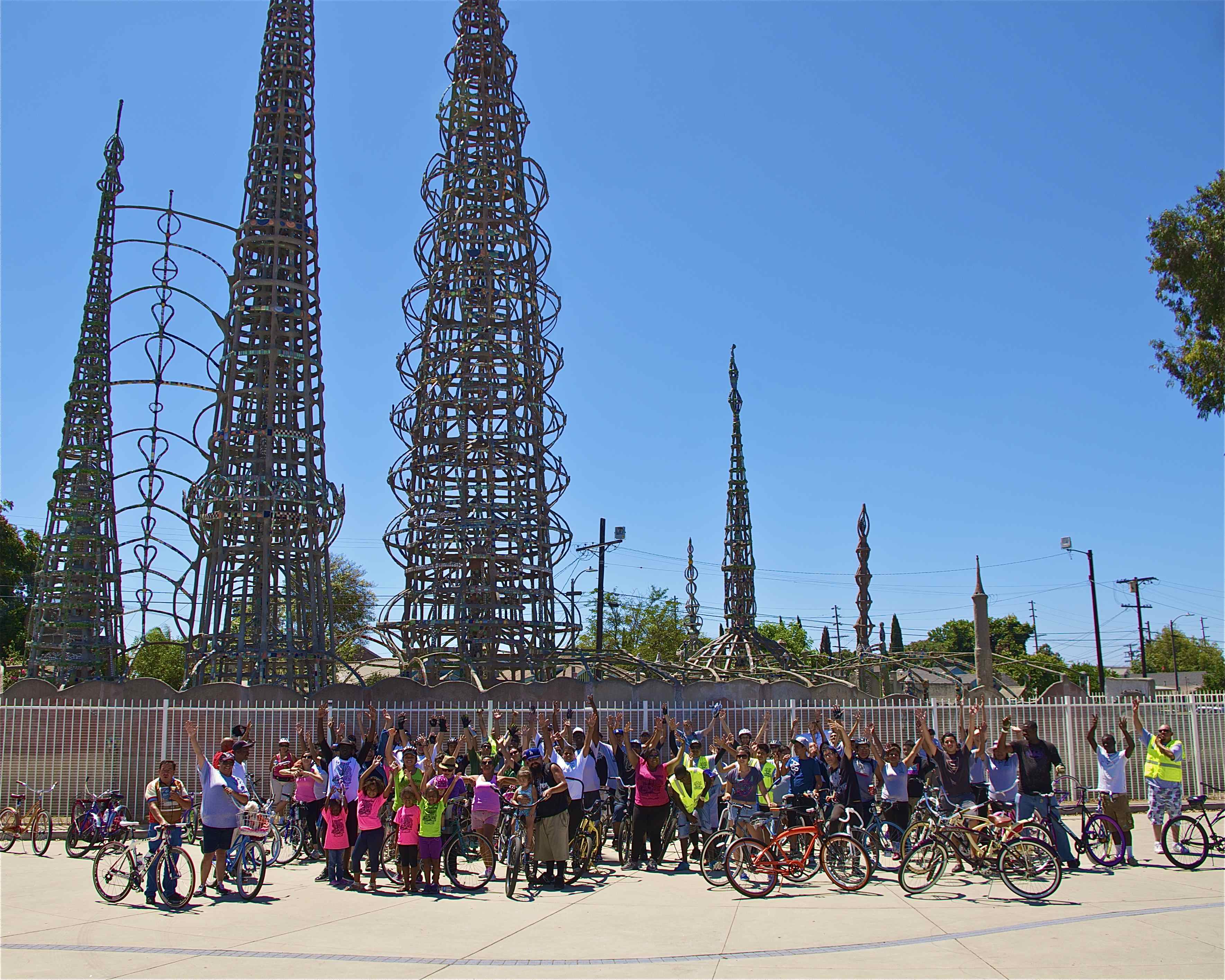 When Mayra Aguilar, a CicLAvia South East organizer, mentioned she wanted to plan a feeder ride to CicLAvia in October, I pulled the ESR’s John Jones III over for his thoughts on the subject. He and Mayra already knew each other — John had been instrumental in convincing “Lolo” to join us and the ESR had helped host the ride. But she hadn’t known that the ESR had successfully led a fun feeder ride from the WLCAC to the South Hub of the CicLAvia route in April.