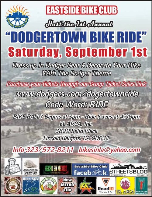 Working closely with the Los Angeles Dodgers, the Eastside Bike Club presents the “Dodgertown Bike Ride.” ESBC has secured a couple of sections at Dodger Stadium for all cyclist and their families through a Group ticket sales. Please purchase tickets here.