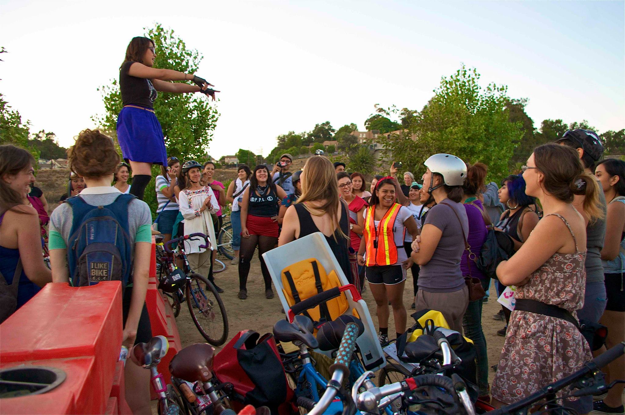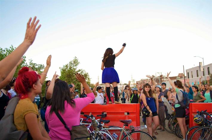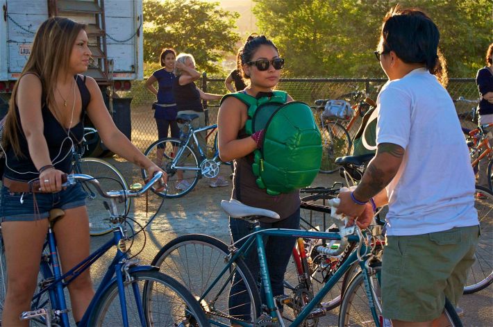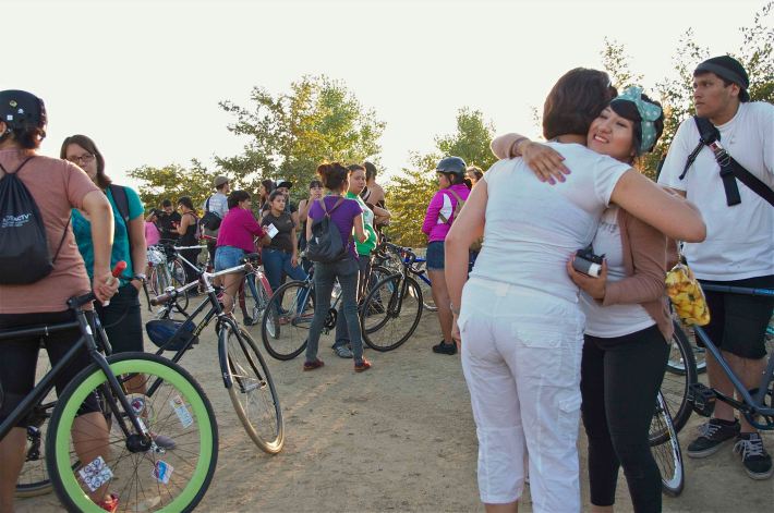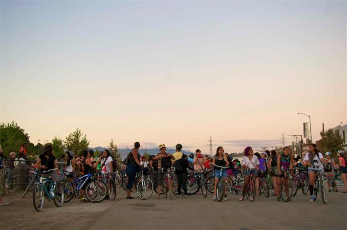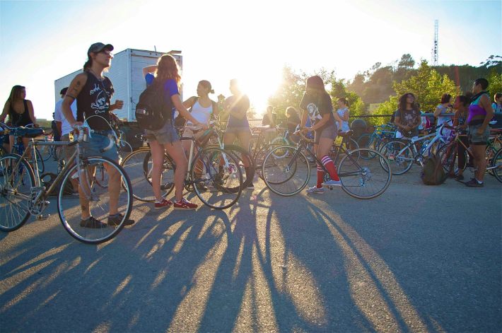 Clitoral Mass last night brought out more than 200 women for a 32-mile ride throughout Los Angeles. The ride brought out women from out of state, the Eastside, from different parts of the city – I heard some from came from Gardena and the westside – and even to the surprise of seasoned riders a host of fresh new faces.