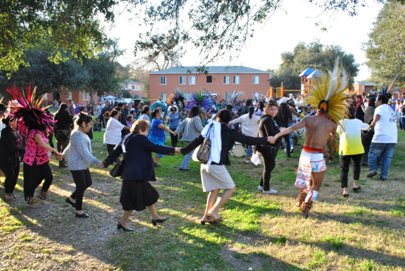 Advocates for the preservation of Wyvernwood Apartments used the simplest of ideas Sunday to oppose the proposed $2 billion redevelopment project: throw a backyard/frontyard party at the complex. Families brought homemade food, silverware was used instead of disposable, and music and dance brought the more than 100 people center stage.