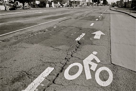 For one, dodging the potholes and wheel-grabbing cracks that liberally populate the narrow bike lanes requires both concentration and strong nerves, as you must sometimes edge toward fast moving traffic or mogul-infested curbs to avoid them.