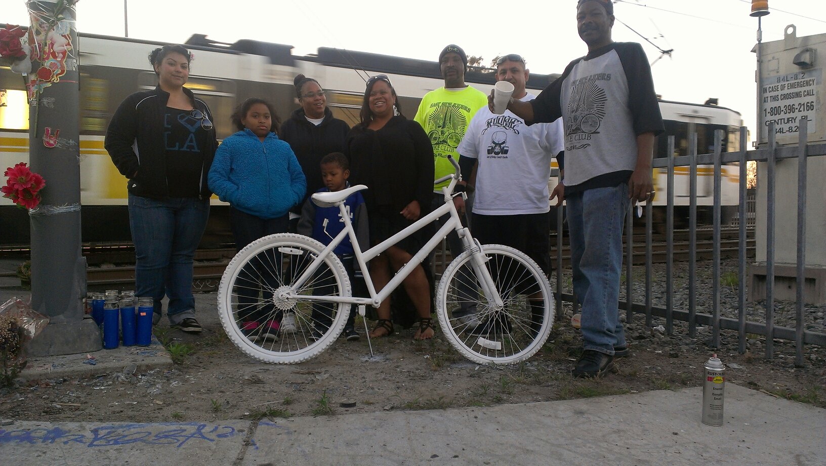 Two new ghost bikes went up in South L.A. and Compton yesterday. One was to commemorate the death last month of Sylvester Henderson, 26, who was hit by the train while crossing the Blue Line tracks at the intersection of Grandee and Century Blvd.