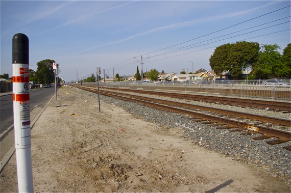 Some of the pedestrian walkways that lead toward the tracks just don’t have room for particular improvements. A wheelchair-bound person, for example, would have to roll back into the street to be able to open a pedestrian swing gate at some spots along Long Beach Ave. In such cases, improvements like flashing lights embedded in the sidewalk may have to suffice.