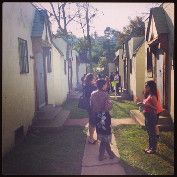 At last Saturday’s tour of the El Sereno Bungalows off of Huntington Boulevard, residents and supporters got a first glimpse at would could be a local community space in an area that lacks the type of recreation. The El Sereno Community Arts Center, which would be built inside the existing, abandoned buildings, would be complete with a garden, dance studio, and a tiendita, a small vending shop.