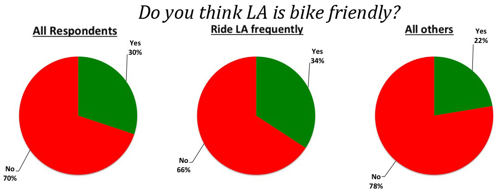 As you can see, the August 2011 numbers are bleak. Even amongst hard-core cyclists, sentiments ran 2 to 1 against L.A. being considered a bike friendly city.