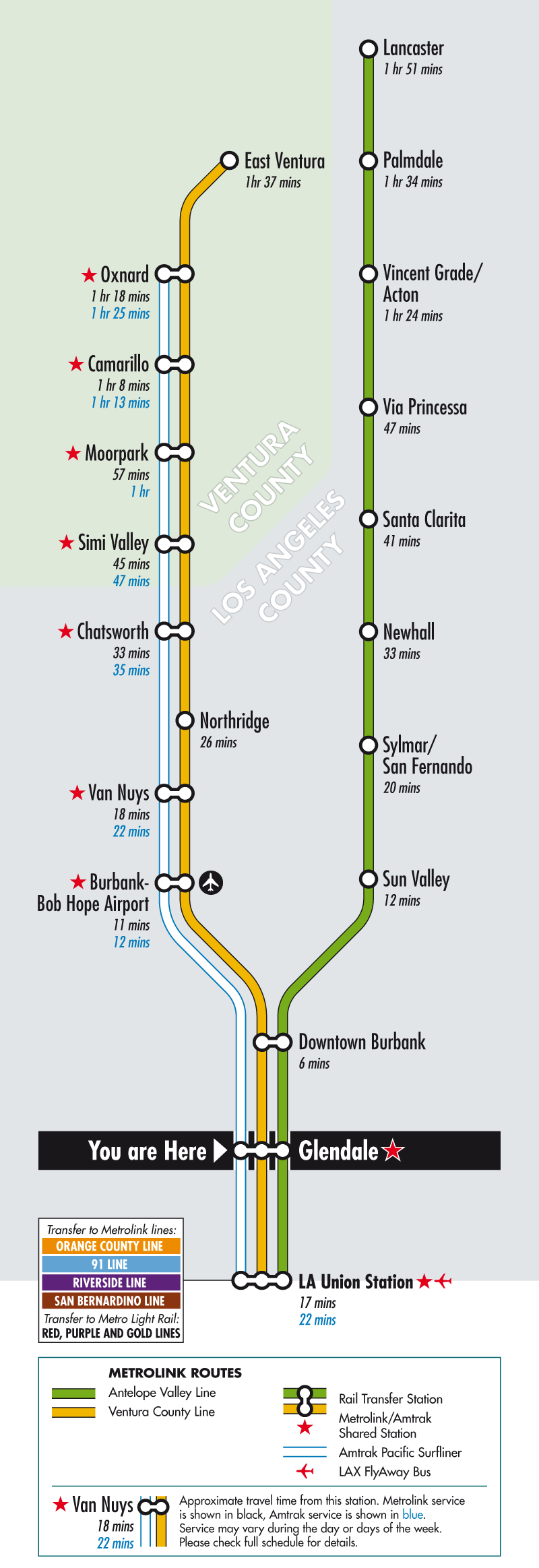 - implement an updated schedule plan that allows for Metrolink and Amtrak train schedules to be coordinated to allow for timely transfers throughout the region, and