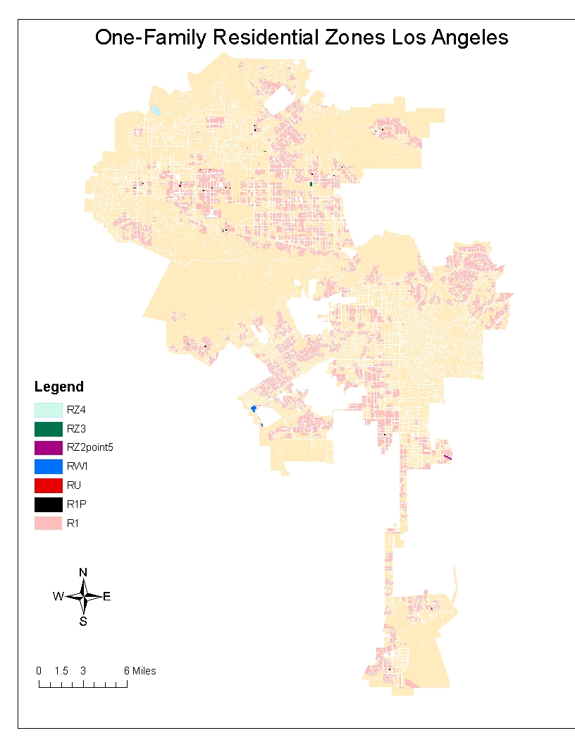 While some parts of LA have apartments mixed in with single family houses on the same street, I am focusing here on single family residential issues. I will cover multi-family dwellings in later sections on boulevards and centers. The maps accompanying this post show what portions of Los Angeles are zoned for single family homes. (Thanks to my research assistant Paige Dow for preparing the maps.