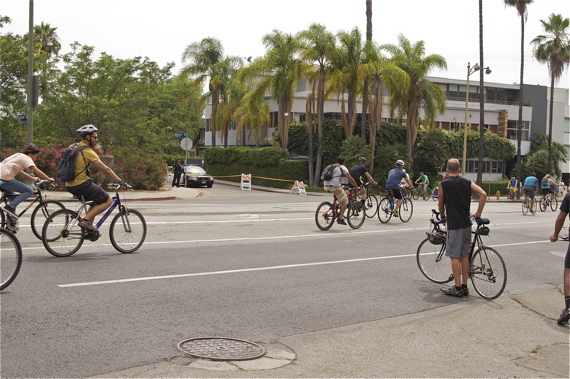 UPDATE courtesy of CicLAvia: “The victim did go to the hospital later that day. He has three fractured vertebrae. Plus his bike is a mess. If anyone saw anything near the Mid-Wilshire Hub incident area, please call LAPD’s West Traffic Division at 213-473-0222.“
