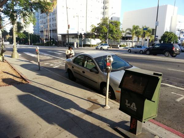 To its credit, the City of Los Angeles is working hard to keep the Wilshire Bus Only Lanes (Bike OK!) open for business. Dana Gabbard grabbed this picture yesterday of parking enforcement hard at work.
