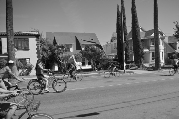 While CicLAvia is now almost old hat and non-news for those of us who are long-time cyclists and/or advocates, the idea of taking to the city streets by bicycle is still new to an awful lot of people. Expressions of wonderment at the event, about getting to see L.A. by bike, and at the riders’ own ability to ride more than a few miles probably comprised at least half of what I heard.