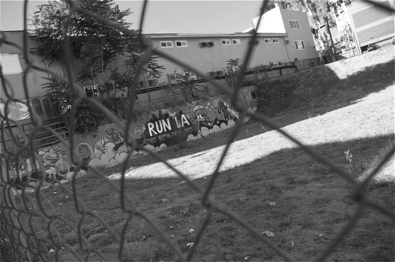 CicLAvia also serves to highlight how much more still needs to be done for many of L.A.’s neighborhoods to be livable. I passed a number of filthy vacant lots along 7th that were screaming out for some sort of intervention, including one (above) whose mural was probably well-intended but seemed more like a taunt to residents. Namely, “You can’t run here! Heh heh heh!”
