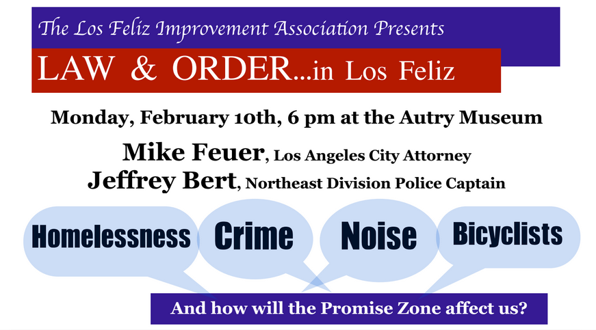 Anyway, any bicyclists that want to head on over to the Autry on February 10th should let us know how City Attorney Feuer and Captain Bert proposed to deal with the problem of bicyclists. I would go myself, but it’s just so noisy in Los Feliz these days.