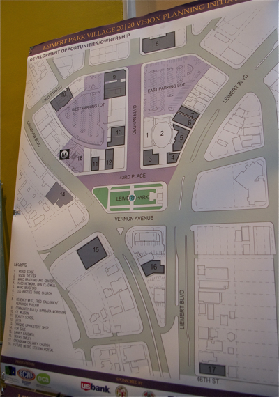 Since the design charrette, stakeholders have been meeting regularly to find ways to make the ideas expressed at the January event bear fruit. One of the approaches has been to build on the success of the Leimert Park art walk (held the last Sunday of the month) and designate the last weekend of the month as “Weekends in Leimert.” Special performances or events underscoring Leimert’s diverse cultural offerings are timed to fall during that period and information about them is now centralized on their webpage.