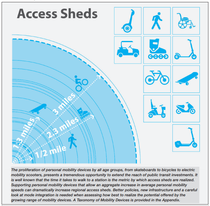 - Missing the Bike Shed: After stating that the bicycling access shed extends a 3-mile radius from each transit stop, all the First Last Mile Plan examples design for only a half-mile radius. Especially as Metro proceeds with implementation of regional bike share, it’s important that Metro consider a sphere of influence well beyond a half-mile from its transit stops.
