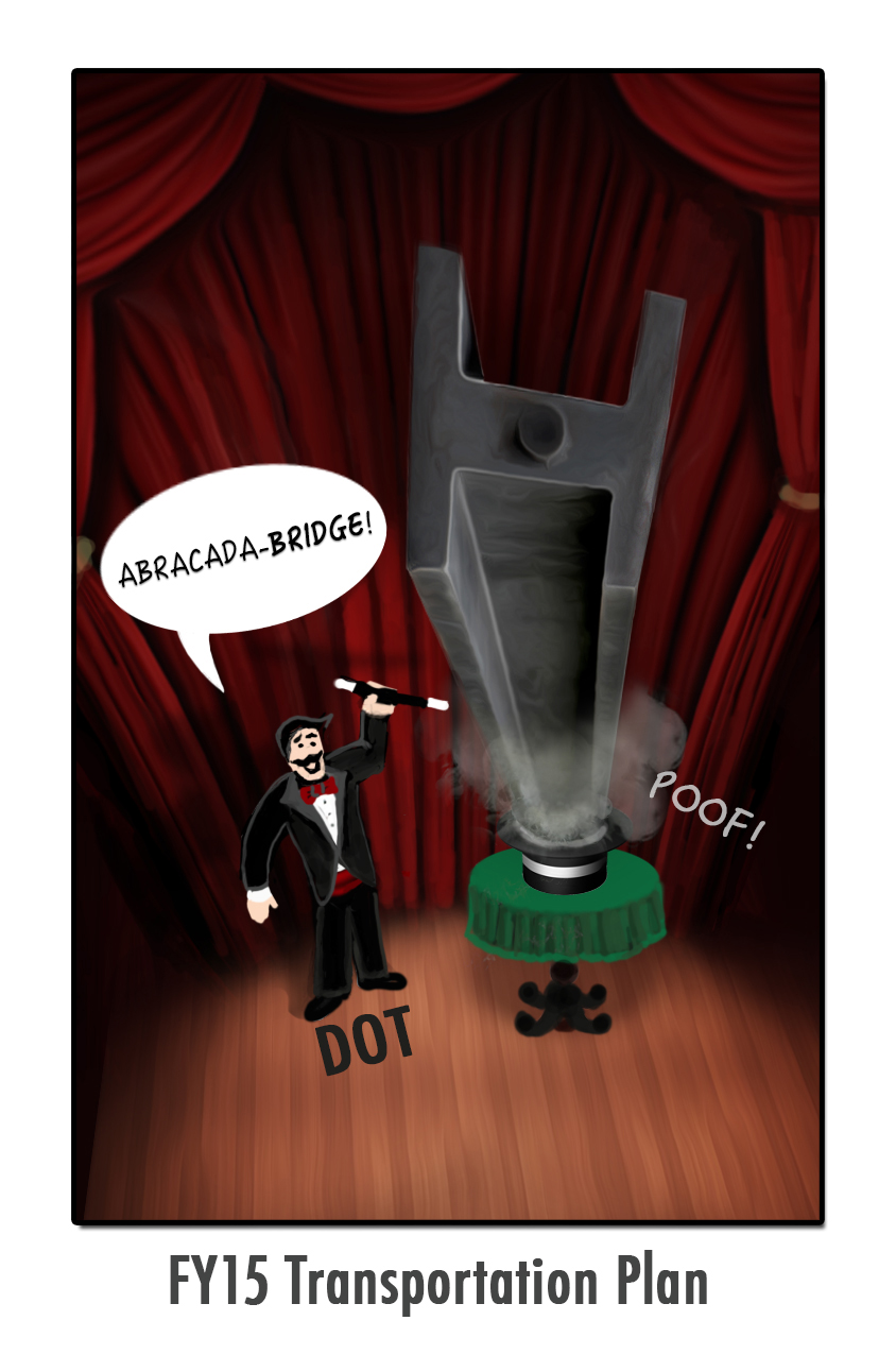 With the Federal Transportation Trust Fund set to run dry at the end of August and the Transportation funding bill to expire a month later, the above comic offers another funding strategy for DOT’s in the next fiscal year. The fiscal year begins today.