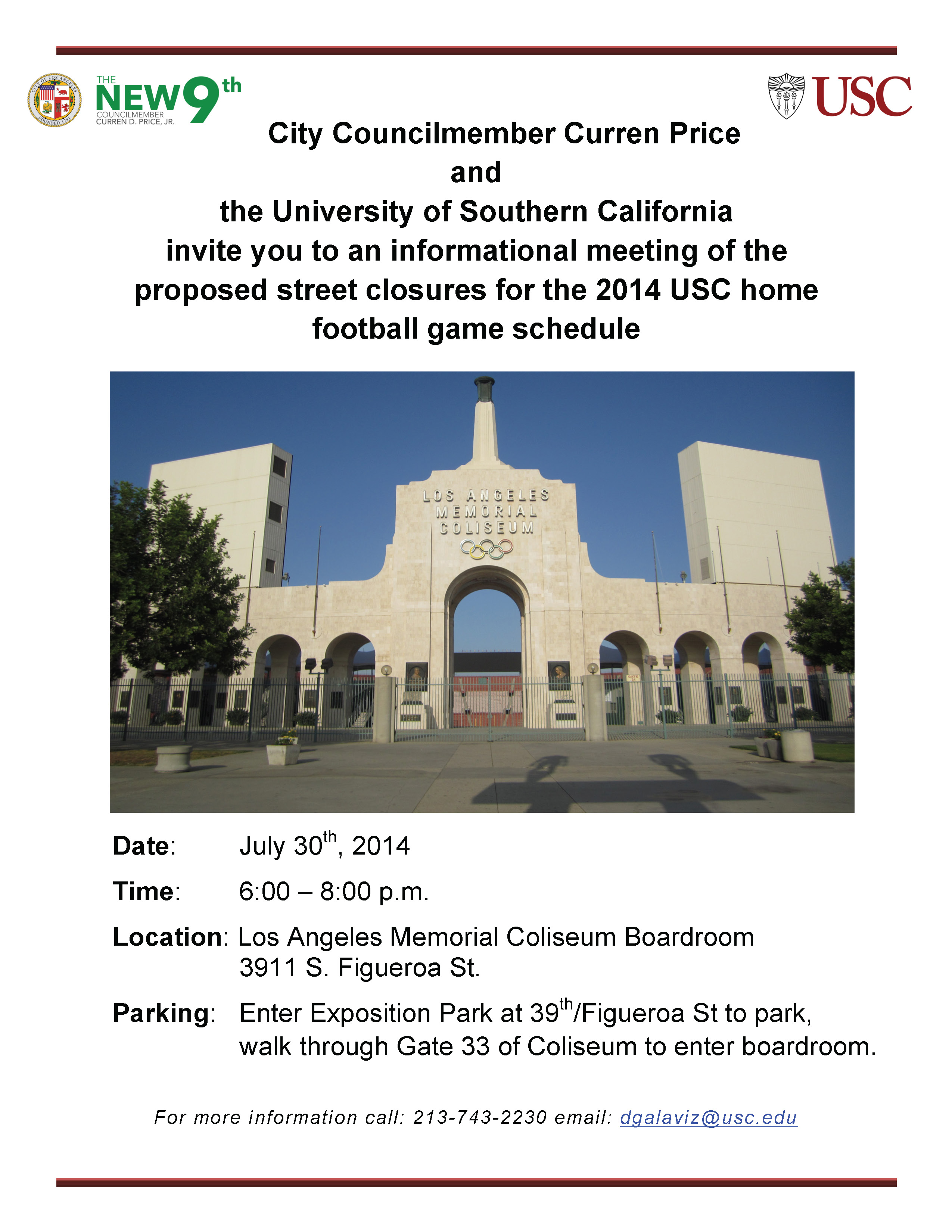 Community meeting regarding USC street closures planned for upcoming football home games.