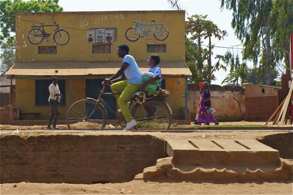Or, a bike taxi driver may have someone carrying heavy goods or a mother and a couple of her kids balanced on the back of his bike.