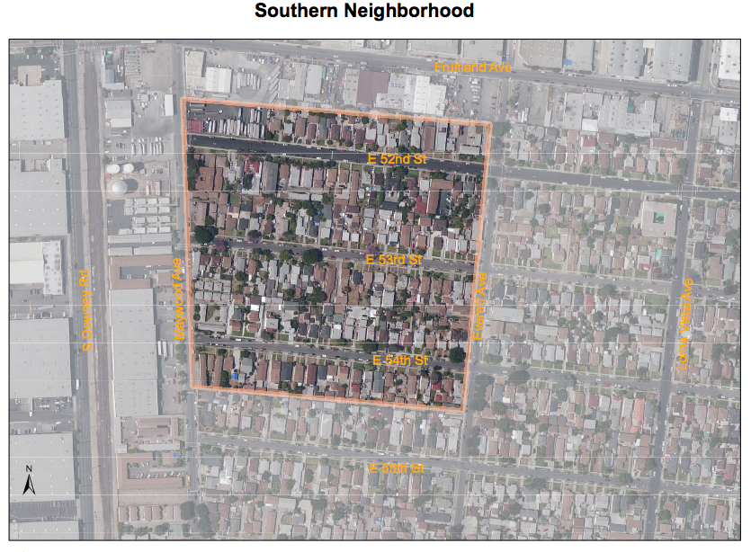 Good news, good people of Maywood, Boyle Heights, and East L.A. who live within the limited assessment areas (see one, above)! The Department of Toxic Substances Control (DTSC) wants you to know that, per a Stipulation and Order settlement reached on November 6 with embattled Vernon-based lead-acid battery recycling plant Exide, if Exide has contaminated your yard with lead, it can be cleaned up at no cost to you! (emphasis theirs)