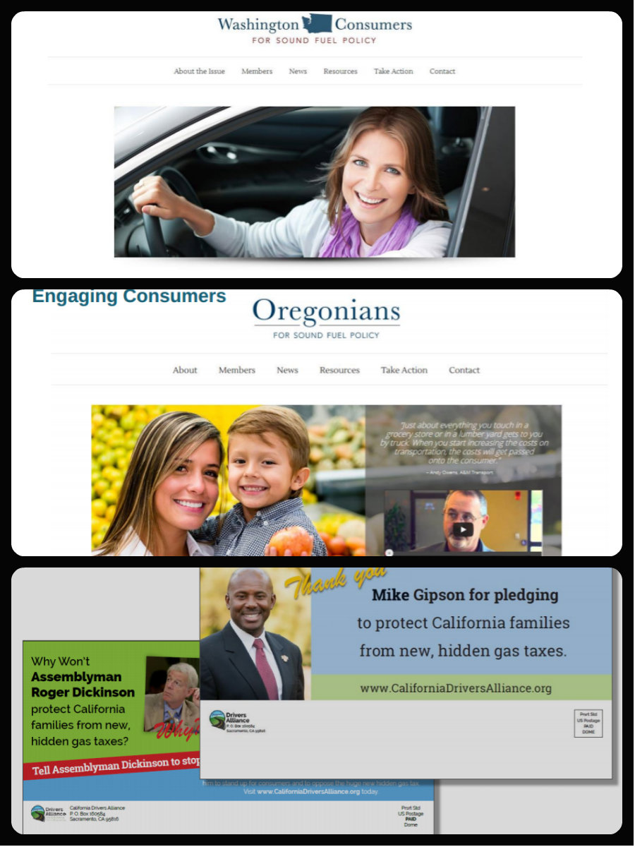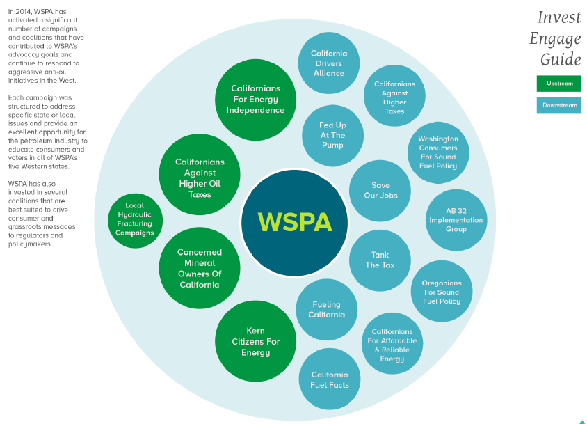 “Groups with names such as Oregon Climate Change Campaign, Washington Consumers for Sound Fuel Policy, and AB 32 Implementation Group are made to look and sound like grassroots citizen-activists while promoting oil industry priorities and actually working against the implementation of AB 32.”