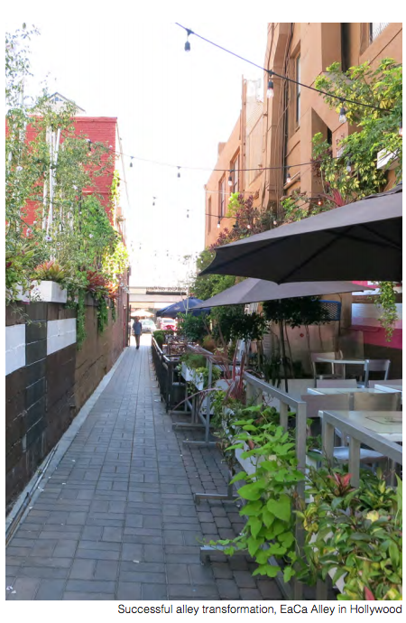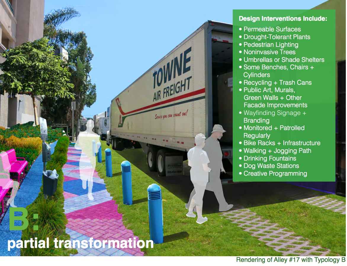 Although a plan for implementation has been outlined, Lall says the BID must partner with the Los Angeles Bureau of Street Services and the Department of Transportation in order for livable green alleys to become a reality.
