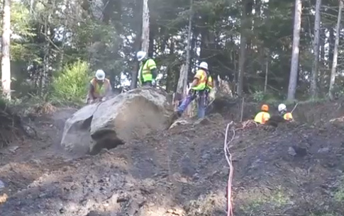 A video released today by Caltrans shows a work crew blasting apart a boulder that threatened to fall onto Highway 101 near Crescent City. Who doesn’t want to watch rocks exploding? With all safety precautions in place, of course.