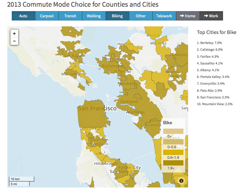 Some other cities have similar kinds of mapping and data sites. Navigate LA has downloadable maps showing a range of data including census, housing, schools, sewer, and street information. But the MTC website goes a step further by making all of its underlying data available for download, some of it in spreadsheets and some of it as GIS shapefiles for mapping.