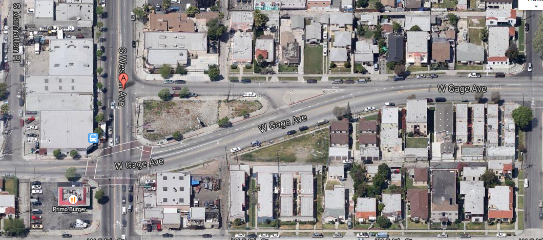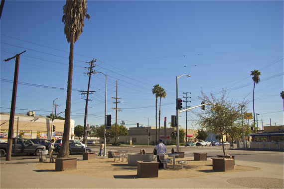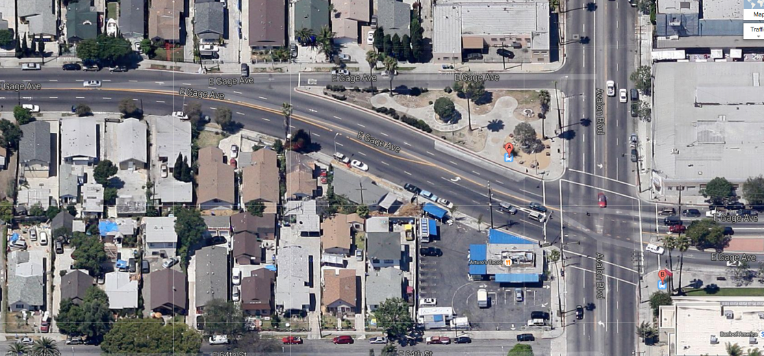 The island sits at a very busy intersection in a neighborhood whose environment is intensely impacted by the factories found on the east side of Avalon, along Gage, and the heavy and fast-moving traffic (especially truck traffic) the corridor sees.