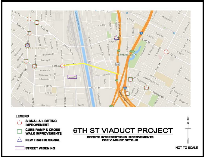 For more information on the 6th St. Viaduct replacement project, visit the website. I am told it will be updated with more information as the project gets underway. If you need more information on the reasons for the bridge renovation, see here. More background on the bridge and previous public briefings can be found here, here, and here. As mentioned above, construction is expected to be completed in 2019. Intersection reconfiguration will begin in the next few weeks and demolition will begin later this summer. Pretty renderings can be found here. If you’d like to participate in the project, either in construction or as a business (particularly if you are a minority-owned or disadvantaged business), please visit the project website and the Bureau of Contract Administration, here.
