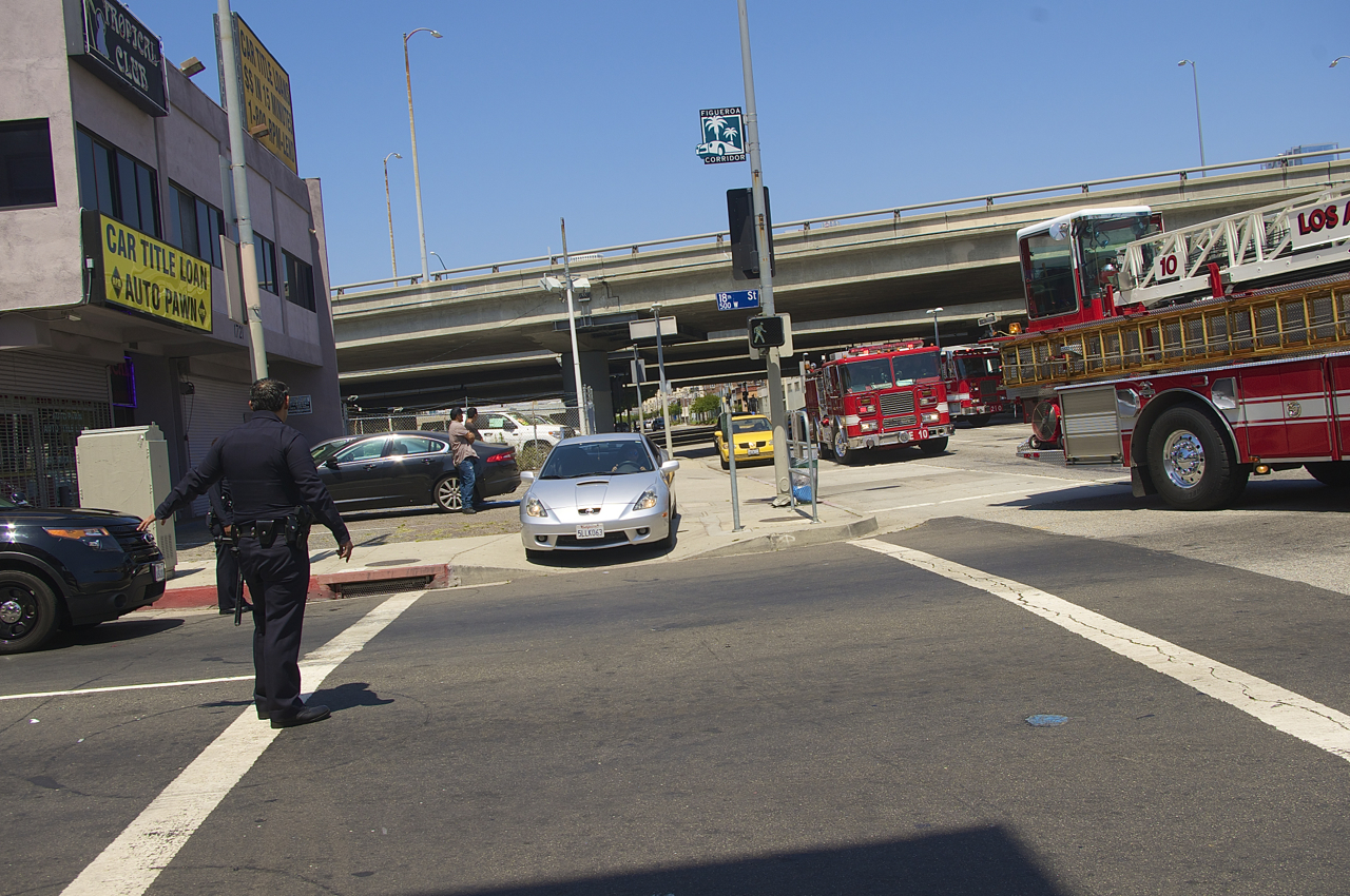 And the massive response it elicited — four fire trucks and several police vehicles — backed the traffic up and forced police to divert cars to the sidewalks.