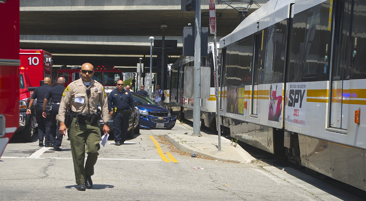 Eyes on the Street: Car Collides with Southbound Train on Expo/Blue Line Tracks