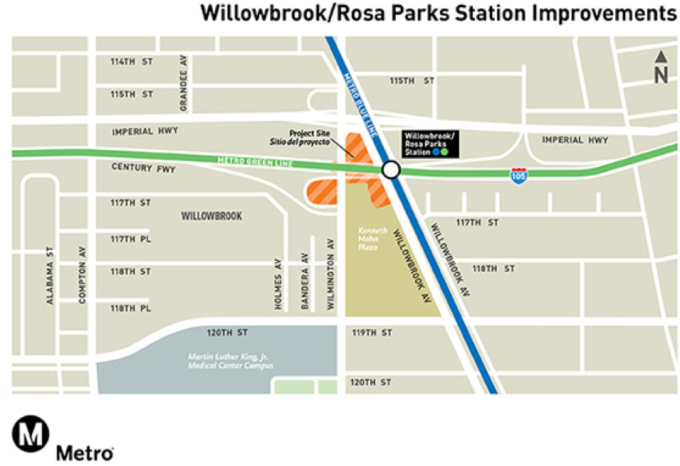 Most notable among these “TOD opportunities” are the upgraded Martin Luther King, Jr., Community Hospital (featuring an Outpatient Center, Mental Health Urgent Care Center and a Center for Public Health, scheduled to open August 7), and the construction of a new library and senior housing at 118th and Wilmington, both of which are located adjacent to the station.